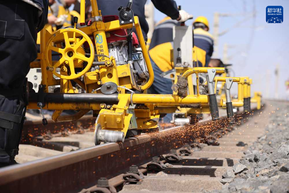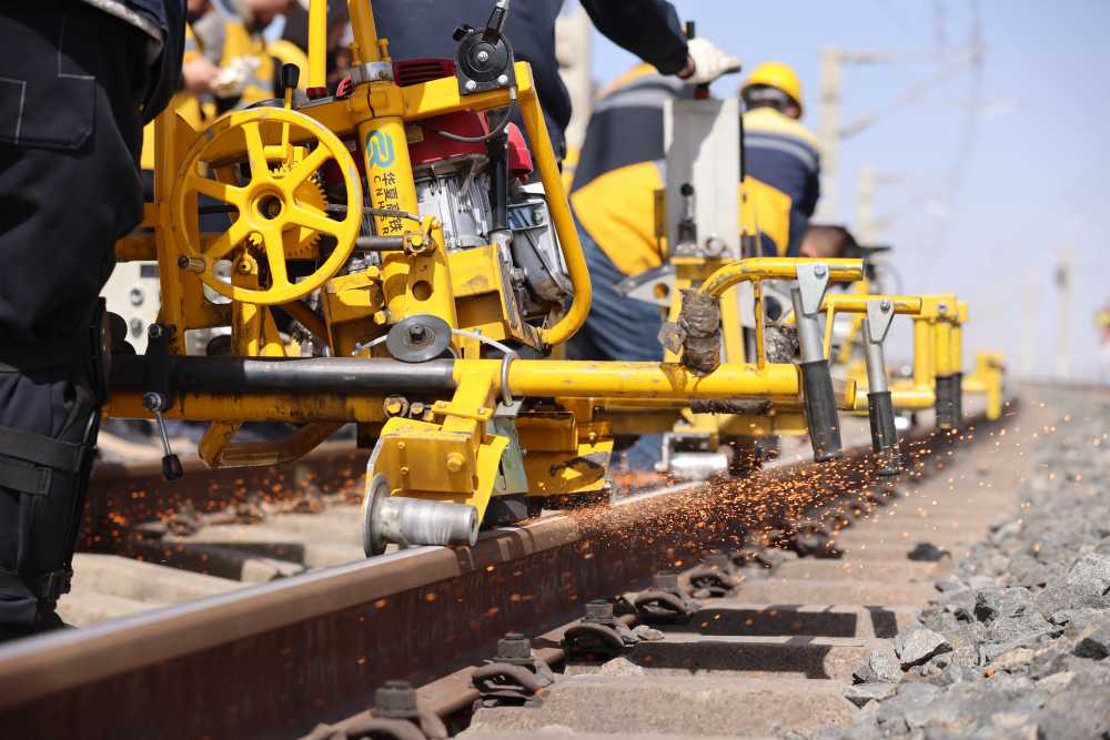 铁路职工操作机器打磨轨道。(受访单位供图)
