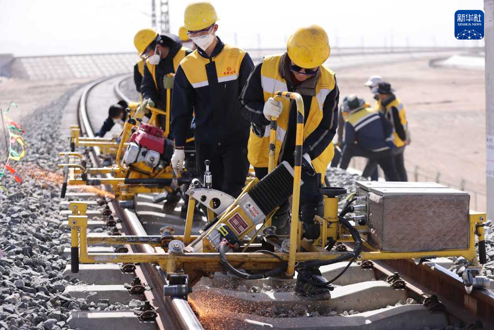 进入4月,昆仑山上仍被白雪覆盖。1日一早,在昆仑山脚下的格库铁路格尔木至格尔木南上行联络线区间防护栏外,中国铁路青藏集团有限公司格尔木工务段重点维修车间的8名职工正仔细地检查装备,为稍后的钢轨“抛光”作业做好准备。