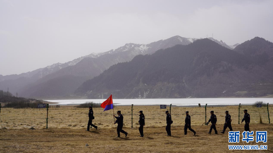 4月2日,青海省海东市互助土族自治县公安局南门峡生态警务室义警队巡护湿地公园。(受访者供图)
