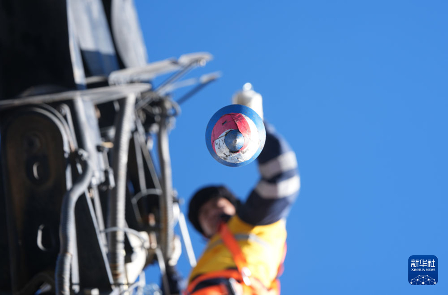 信号工在哈尔盖信号车间哈尔盖信号工区青海湖站道岔涂油。