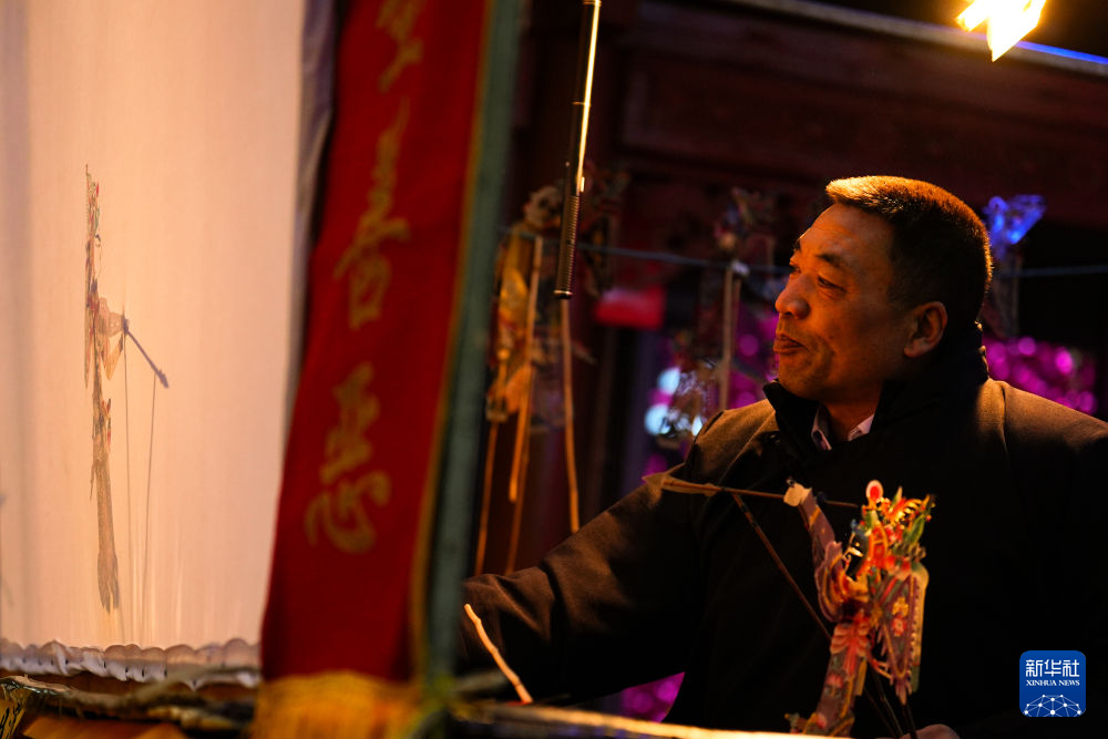 1月25日,周邦辉在青海省西宁市城北区表演皮影戏。新华社记者 齐芷玥 摄