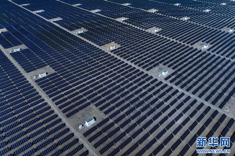 这是2024年4月15日在青海省海南藏族自治州共和县塔拉滩绿色产业发展园区拍摄的光伏电站。(新华社记者 张龙 摄)