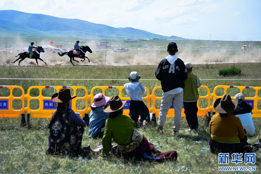2025年8月17日,观众在共和县江西沟镇观看赛马。(新华社记者 齐芷玥 摄)