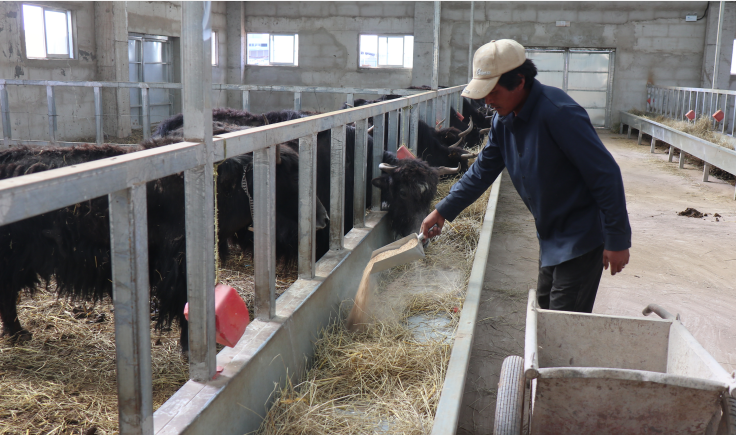 目前,2022年5月启动的科日干村集体经济股份合作社(牛养殖小区)有“雪多”牦牛526头,规模圈养326头,经济效益达到了100万元,牛崽存活率95%以上。