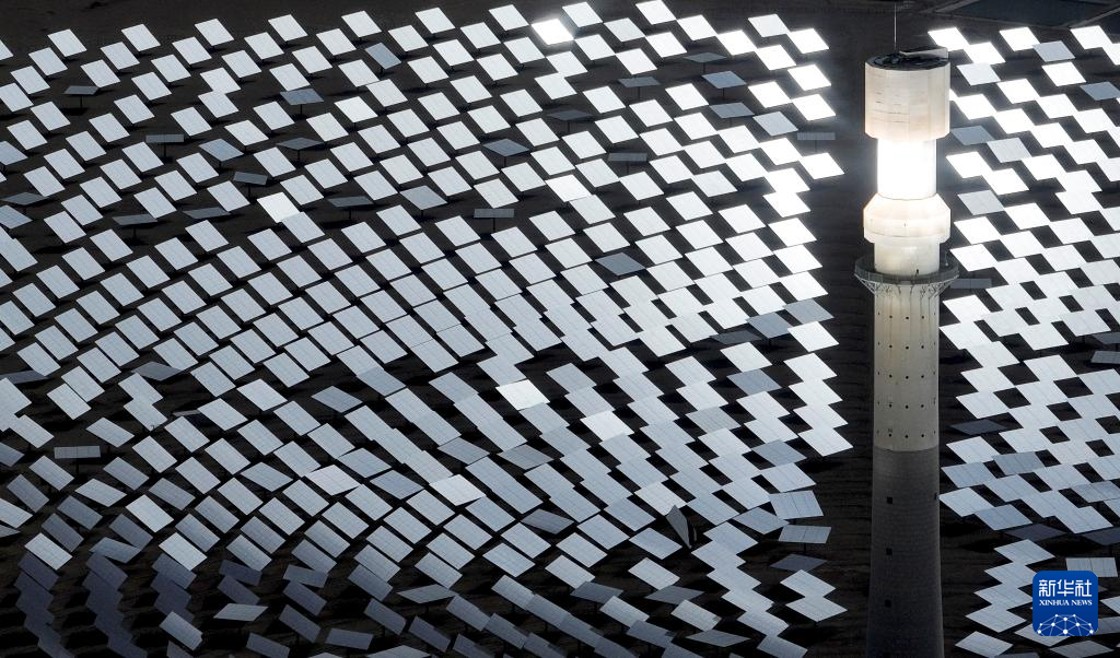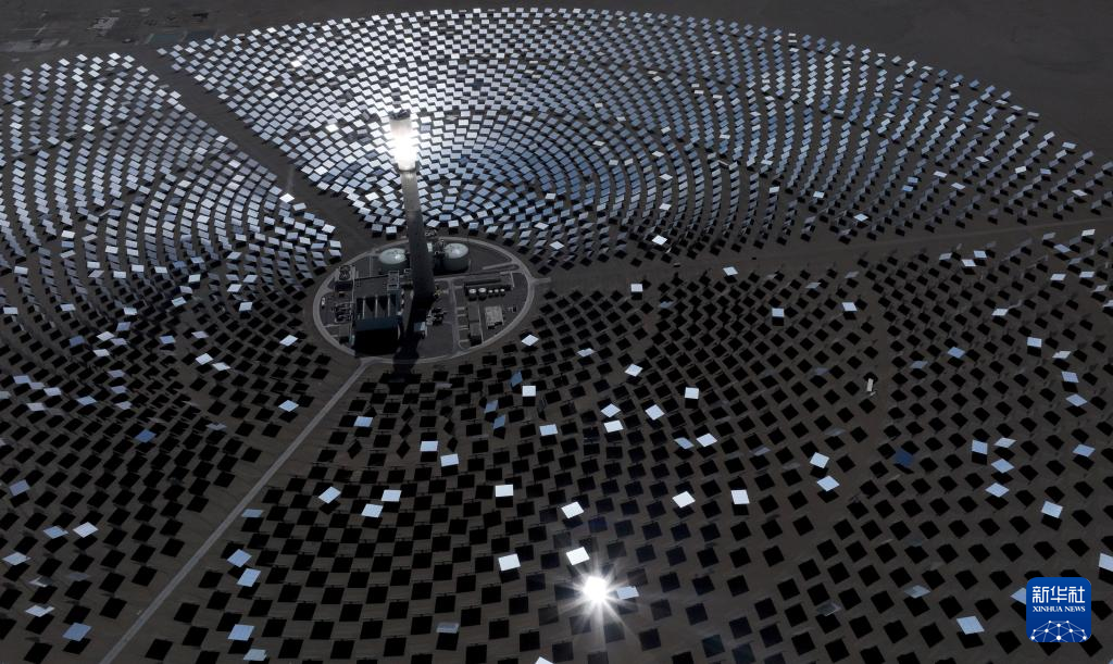 这是6月11日在海西蒙古族藏族自治州格尔木市拍摄的一座光热电站(无人机照片)。 新华社记者 张宏祥 摄