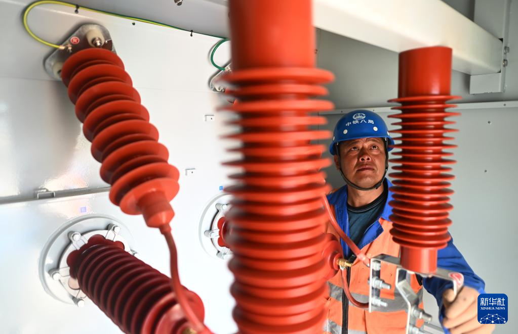 6月10日,中铁八局施工人员在海西蒙古族藏族自治州德令哈市中国华电50万千瓦光伏项目现场进行检查。 新华社记者 张宏祥 摄