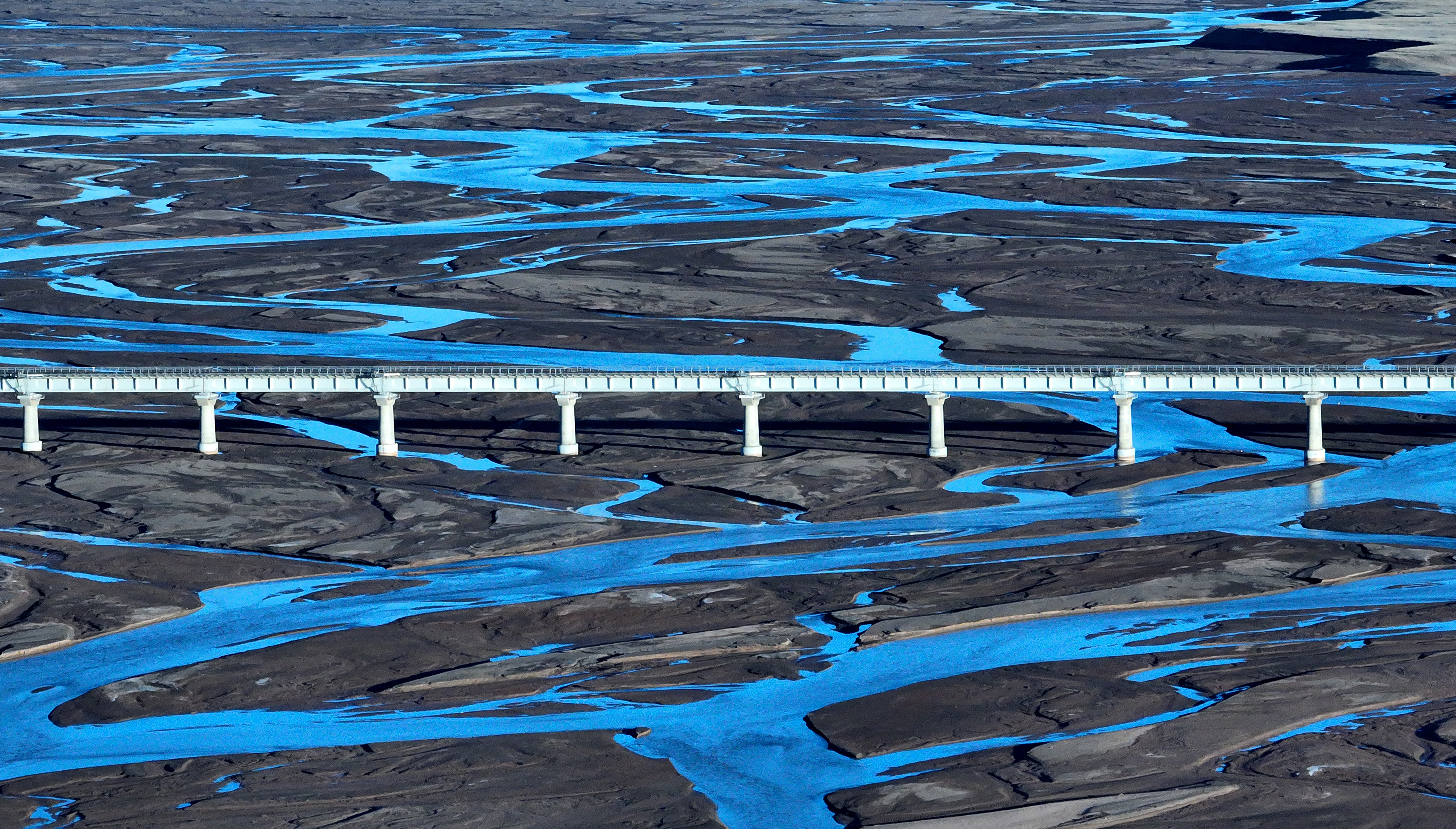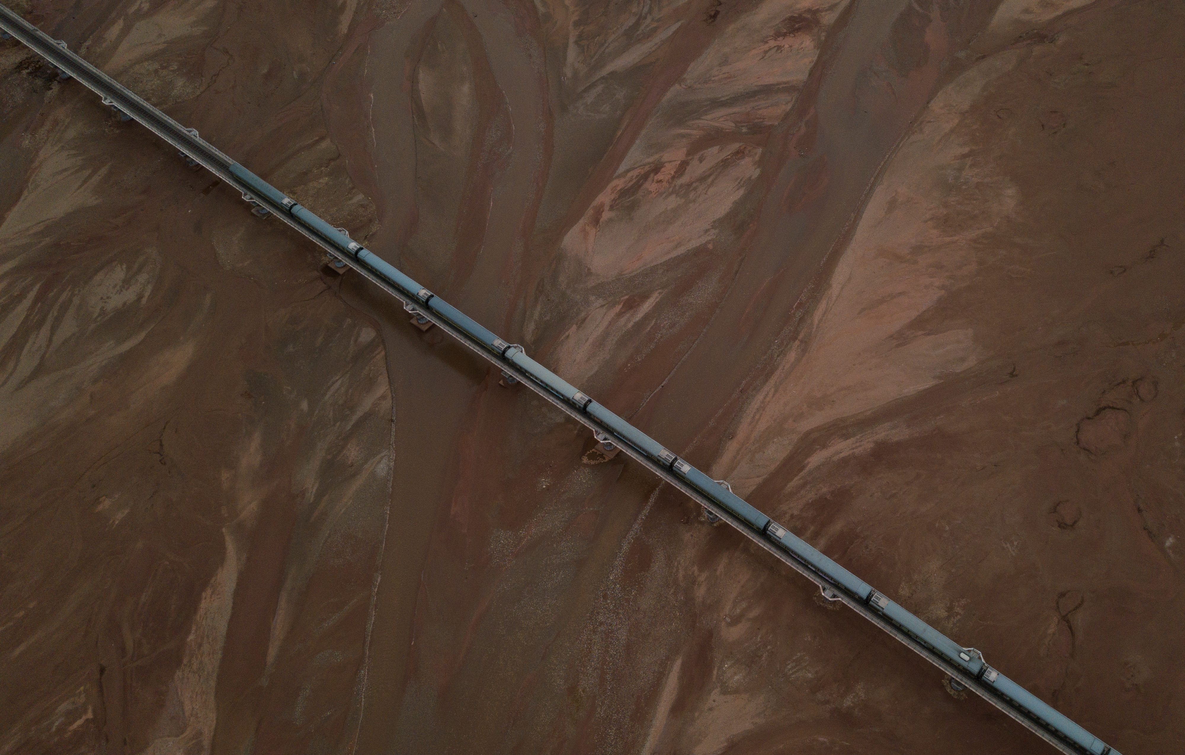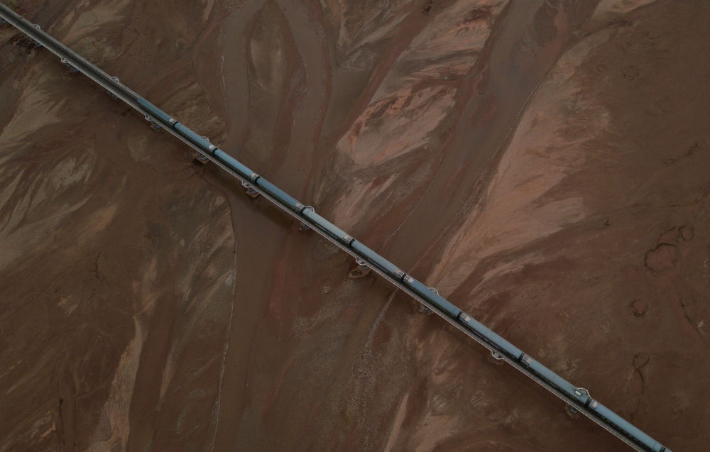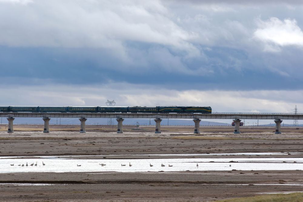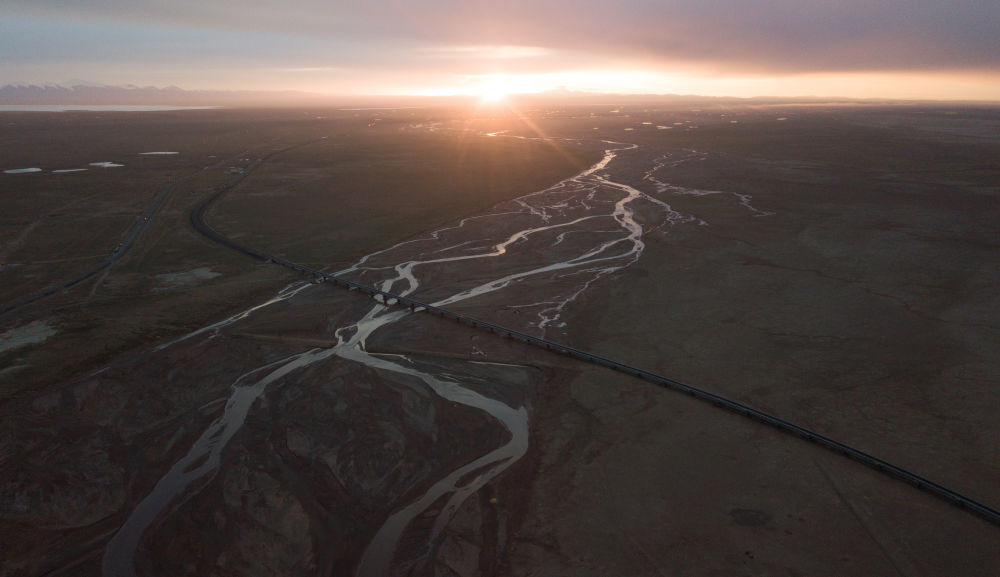 6月16日,一列火车经过长江源地区的楚玛尔河。