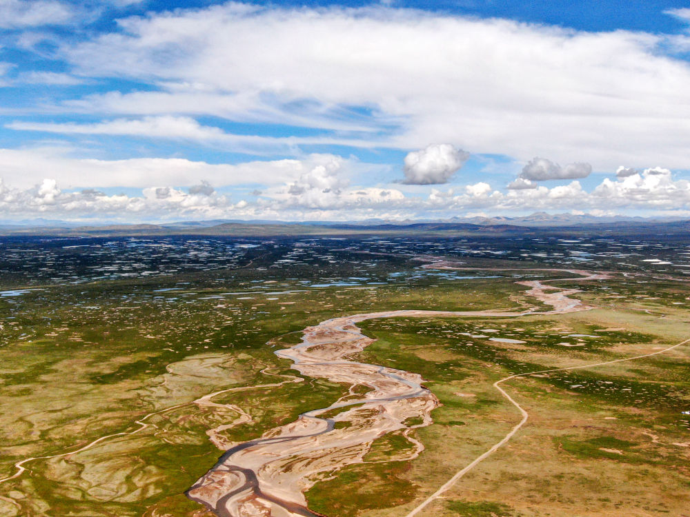 这是2022年7月27日在长江源地区拍摄的囊极巴陇河道,长江正源沱沱河和南源当曲在此汇合。
