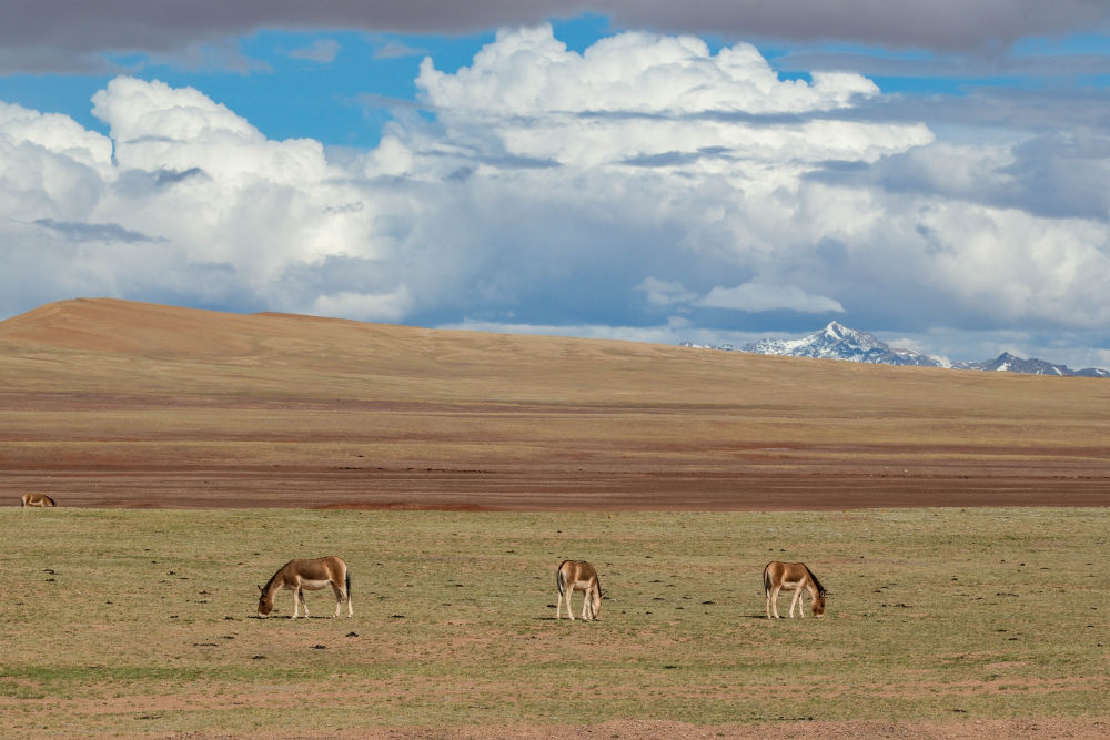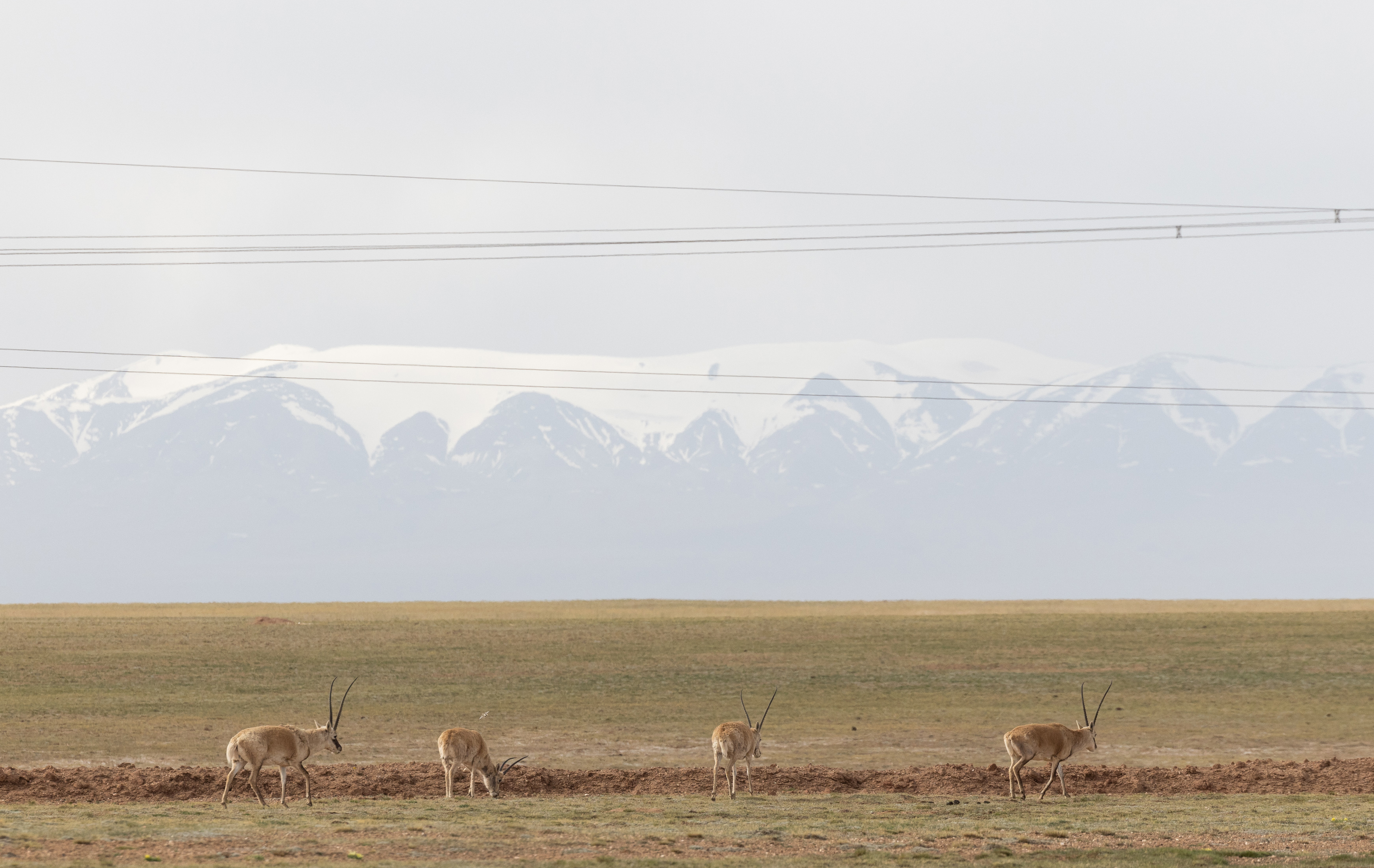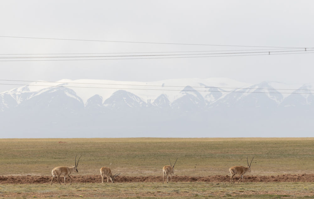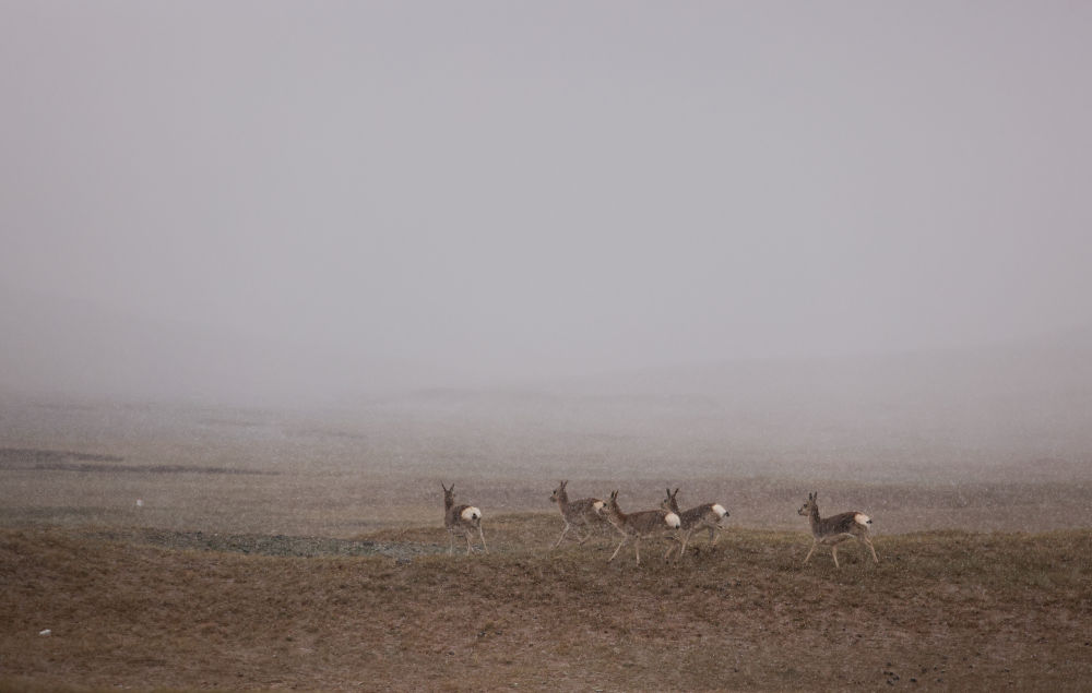 6月16日,在长江源地区的楚玛尔河附近,几只藏原羚在嬉戏。