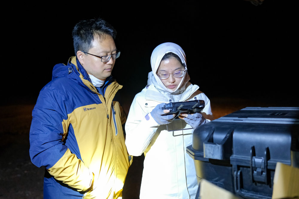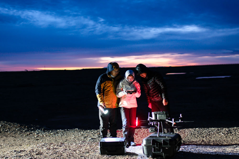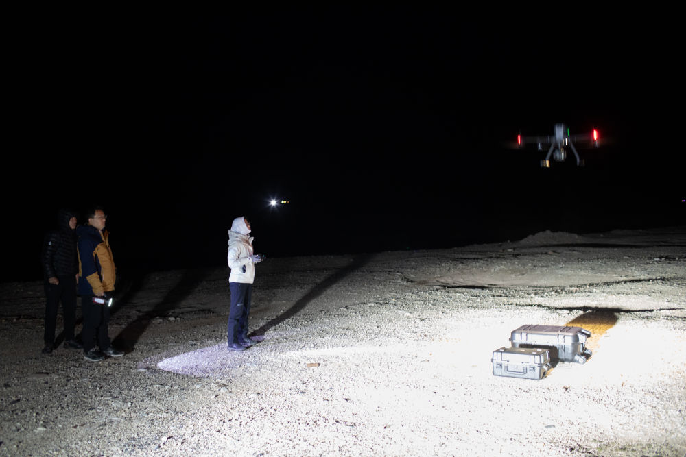 6月16日凌晨,连新明团队使用无人机监测藏羚羊迁徙途中的夜宿地。