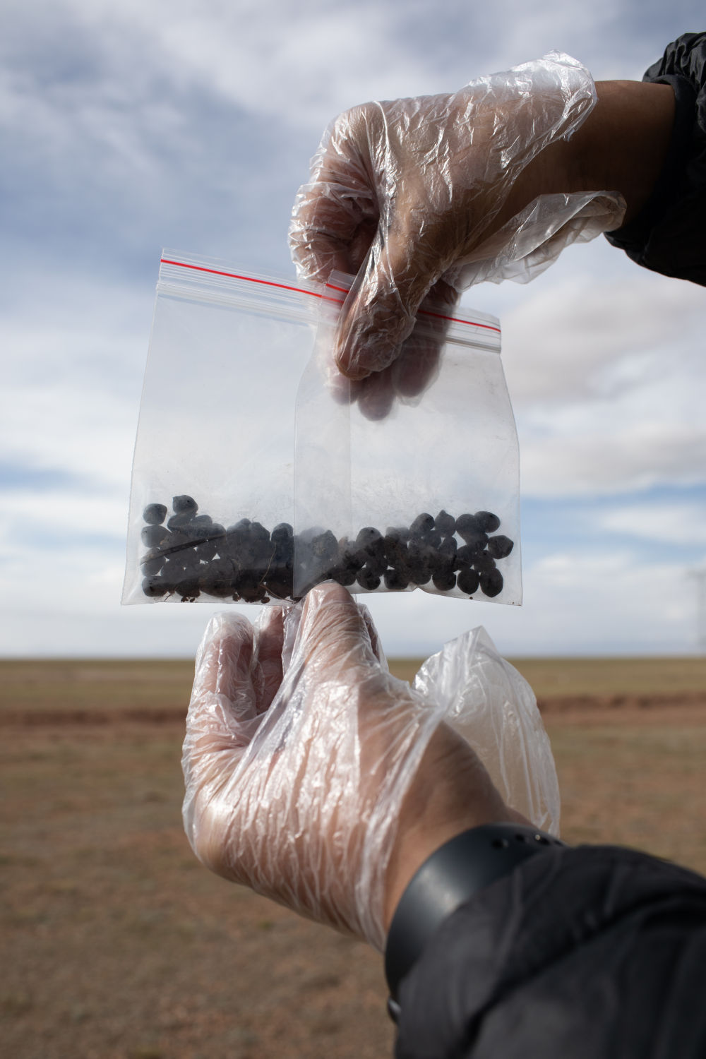 6月15日,王东展示刚采集的藏羚羊新鲜粪便样本。