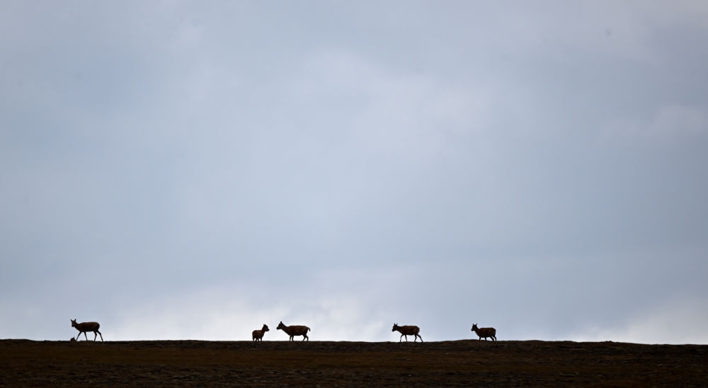这是6月16日在可可西里卓乃湖区域拍摄的一群藏羚羊。