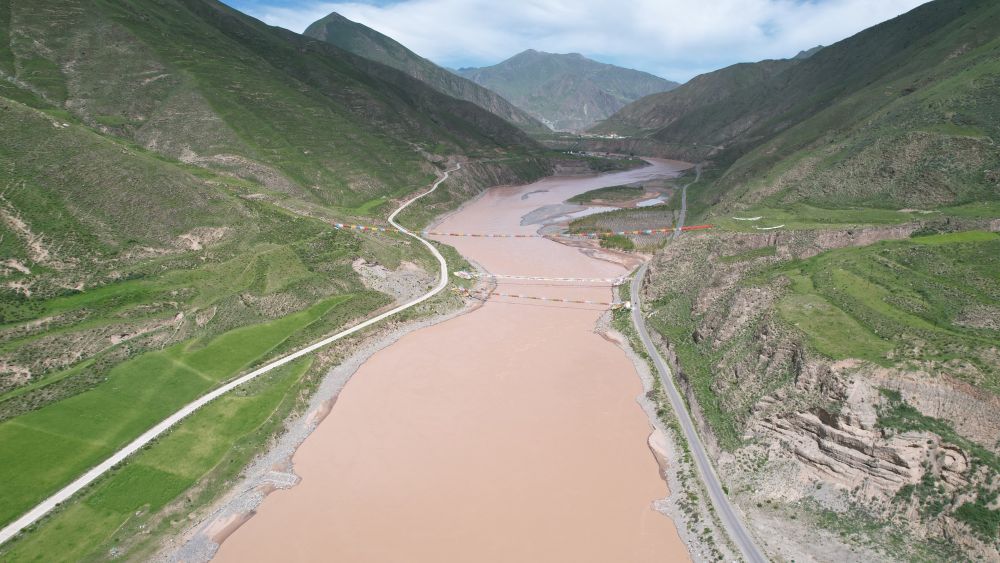 这是7月22日拍摄的通天河直门达水文站(无人机照片)。 新华社记者刘诗平摄