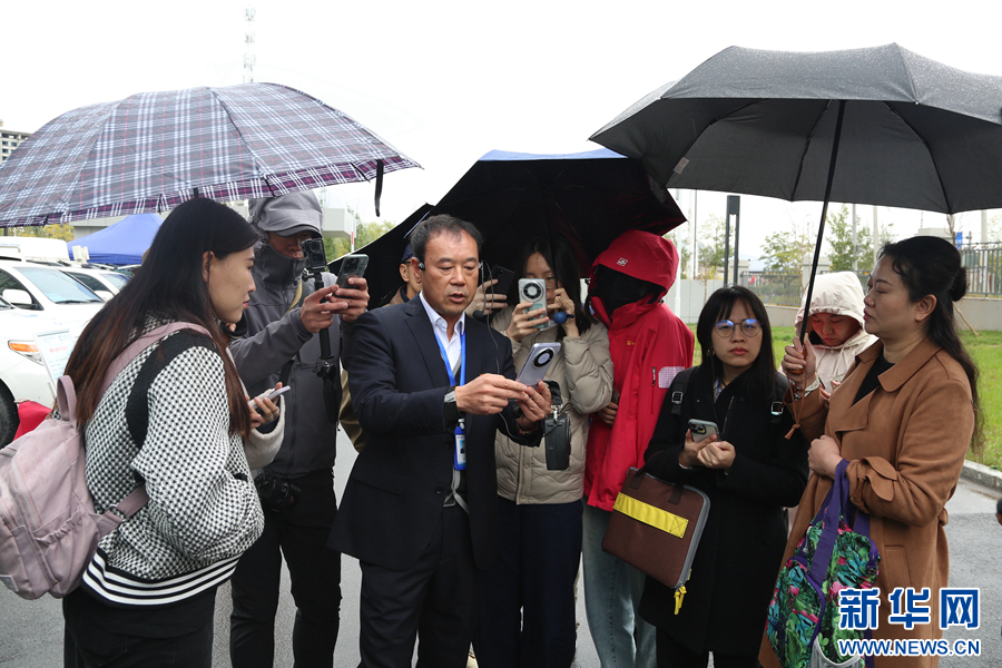 工程师现场演示华为Mate60 Pro卫星通话测试。新华网 卡娅梅朵 摄