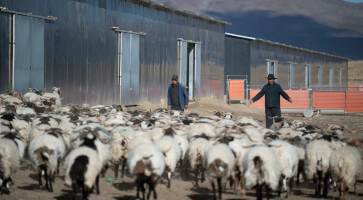 廿地乡是一个以牧为主、农牧结合的乡,位于共和县中部,共有农牧户1500户,五村联合社藏羊养殖基地是创新打造的“多村抱团”高效养殖合作模式。该项目于2022年1月开工建设,2023年5月竣工验收,7月底启动运营,现有藏羊存栏4296只,适繁母羊1296只,羔羊3000只。