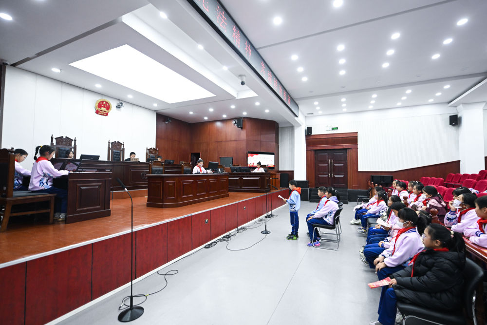 12月1日至7日为“宪法宣传周”,青海省西宁市城西区人民法院组织开展“模拟法庭”,邀请小学生担任审判员、公诉人、辩护人等法庭角色,体验法庭审理程序,增强孩子们的法律观念和守法意识。