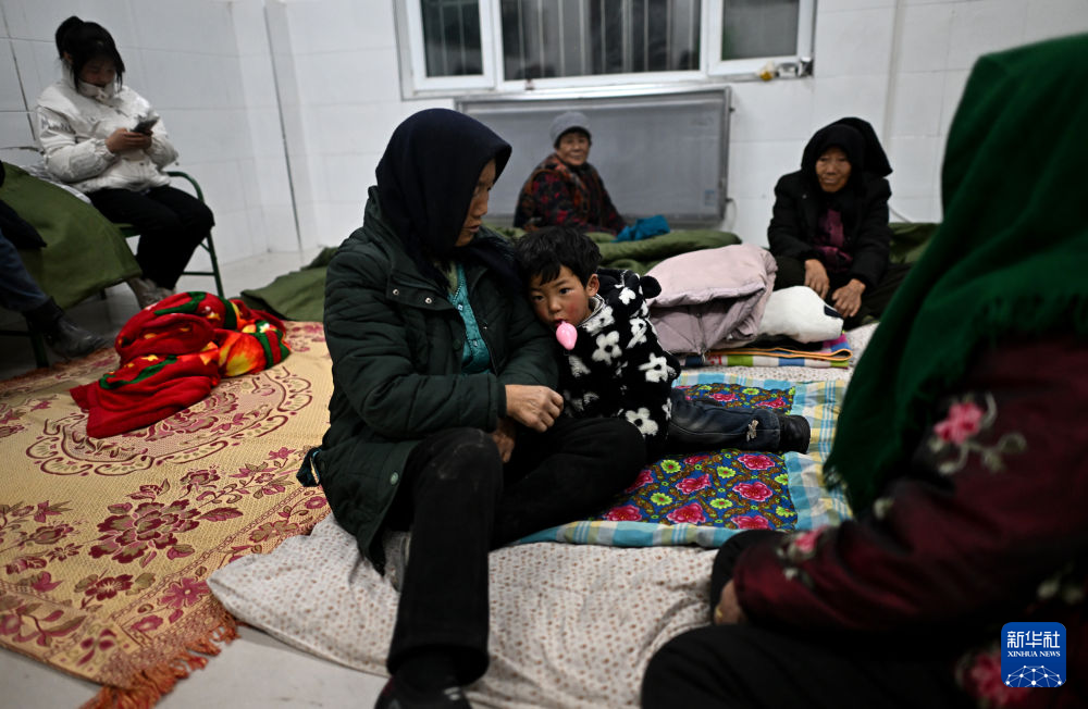 12月19日,当地民众在民和县中川乡美一小学的集中安置点休息。新华社记者 张宏祥 摄