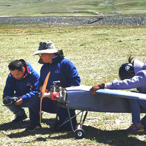 在三江源国家公园长江源园区,科考队使用固定翼无人机探测野生动物。(受访单位供图)