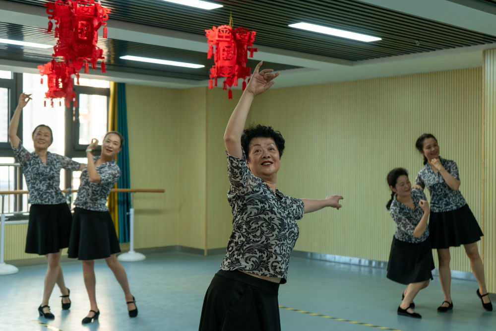 城北区火车西站街道综合养老服务中心,老人们在排练节目。新华社发(任元昊摄)