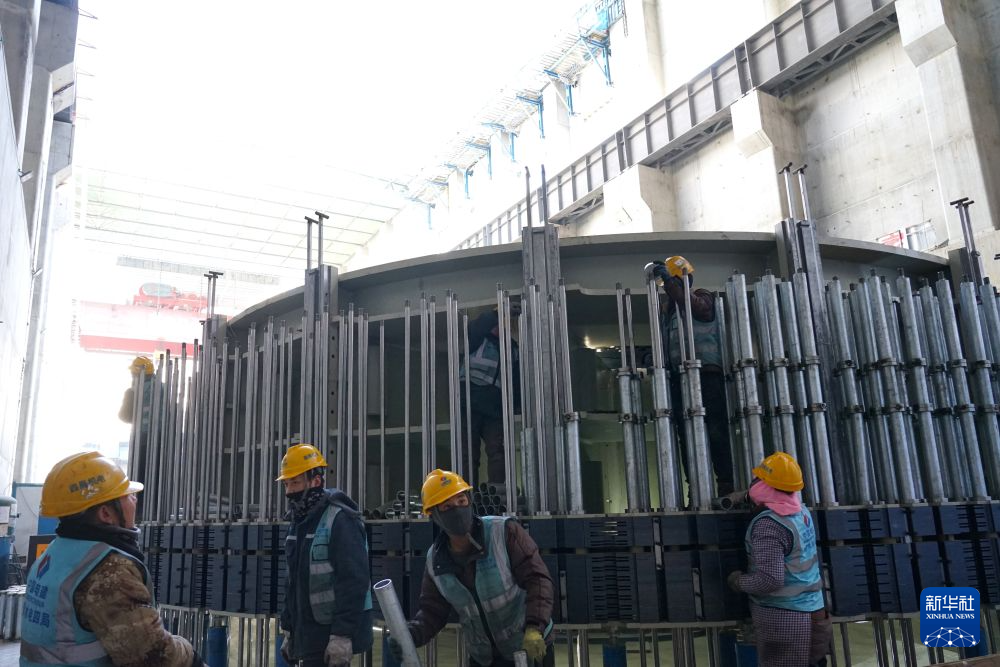 2024年1月30日,在羊曲水电站安装间,施工人员正在作业。新华社记者 解统强 摄