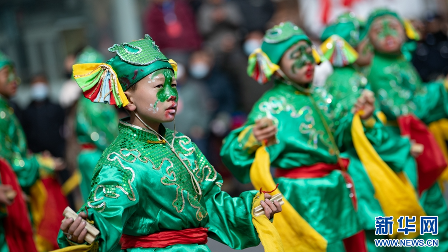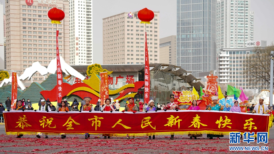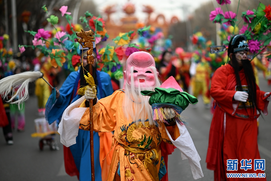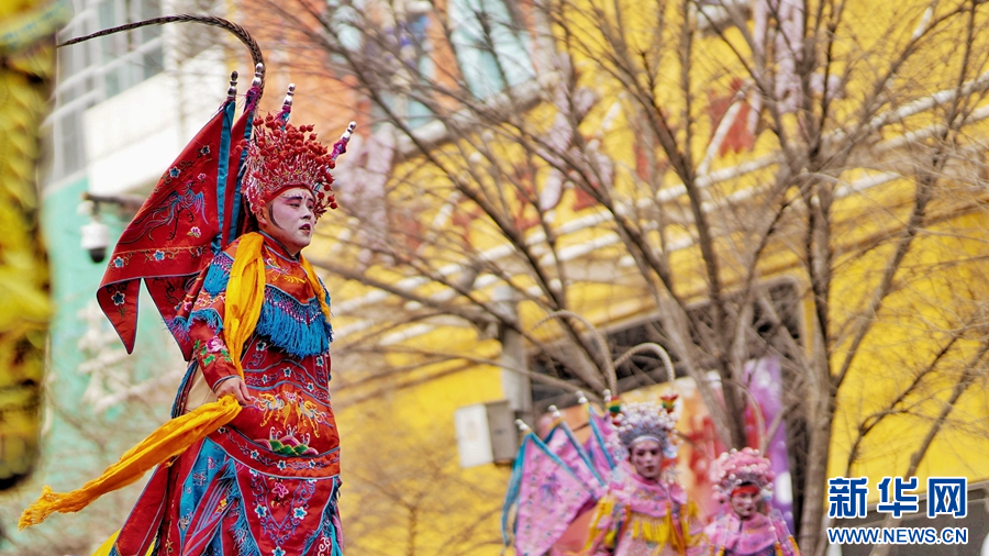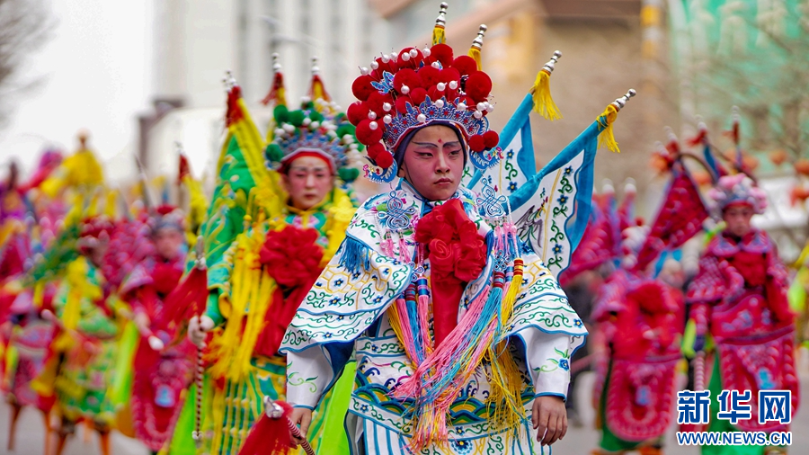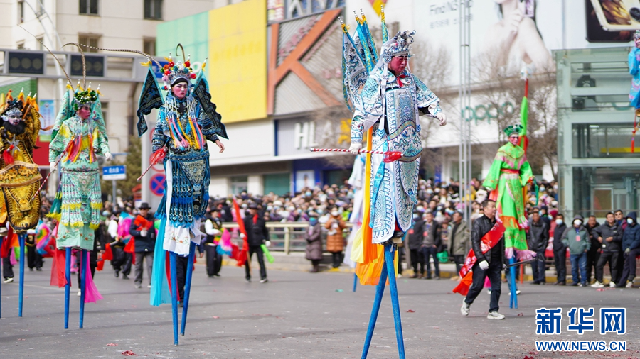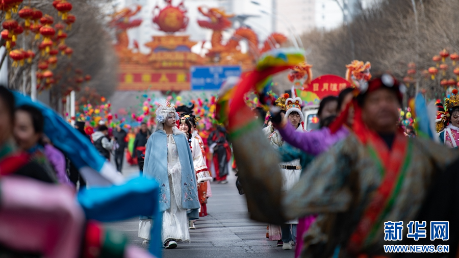 西宁市优秀社火集中巡游活动现场。新华网发(宋忠勇 摄)