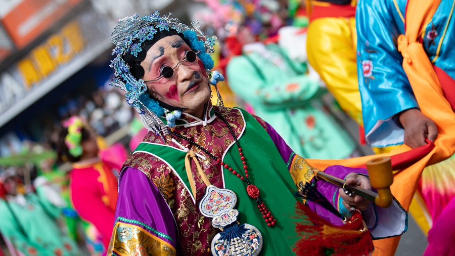 2月19日,青海省西宁市优秀社火集中巡游活动在西宁举行。活动现场,2000余人同场献艺,为西宁市民带来了一场精彩的新春“文化大餐”。