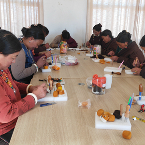 牦牛养殖规模得到控制,生态环境得到有效保护,当地妇女的生产生活水平如何进一步改善?经过前期考察,结合当地妇女意愿,2021年底,当地党委政府和民间自然保护机构山水自然保护中心提供支持,由亚玛索那担任负责人,带领村子里的十几名妇女组建了妇女手工坊,初步确定制作挂饰、耳饰、冰箱贴、杯垫等牦牛绒制品。