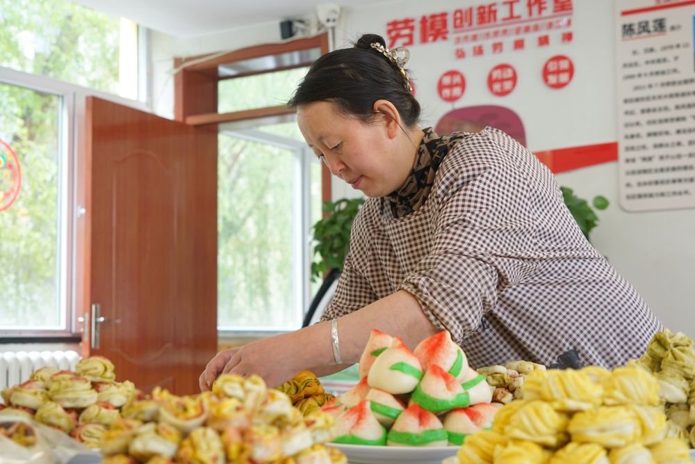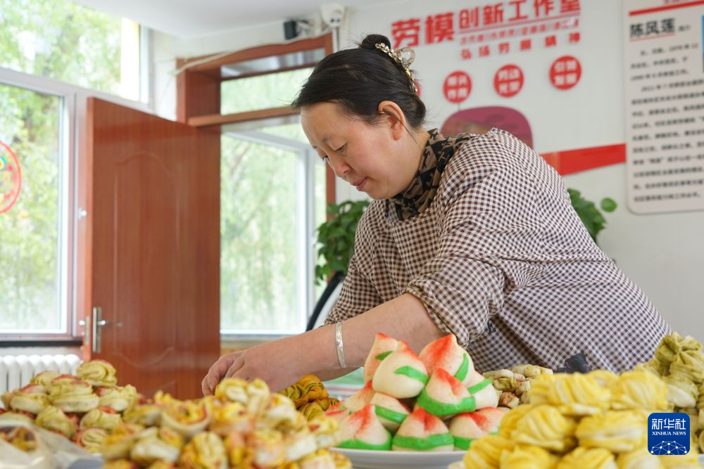 5日上午近十点,青海省西宁市城东区慈幼社区办公楼里,阵阵菜籽油香混杂着刚出锅面点的麦香飘出窗外。55岁的马阿菲牙在二楼操作间忙着揉面,身旁几位大姐帮忙打下手,谈笑间,热气腾腾的小花卷出锅。