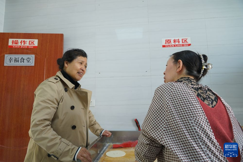 在青海省西宁市城东区慈幼社区“共富工坊”,党委书记陈风莲(左)与群众交流。(新华社记者 张子琪 摄)