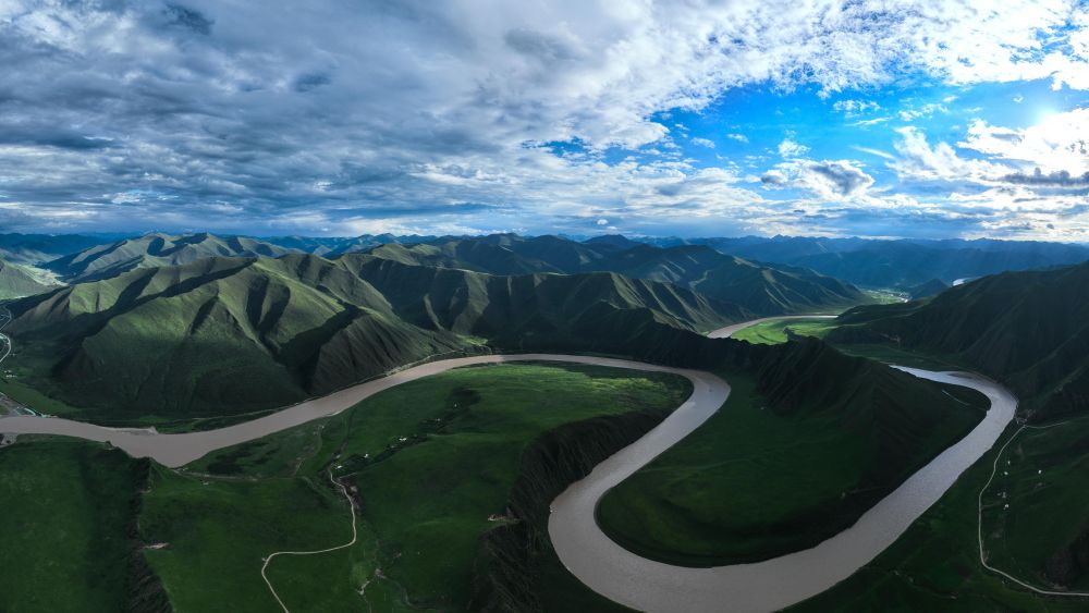 黄河女儿湾位于青海省果洛藏族自治州久治县门堂乡境内。夏日,蜿蜒黄河与如黛青山相映成趣,生机盎然,风光秀美。