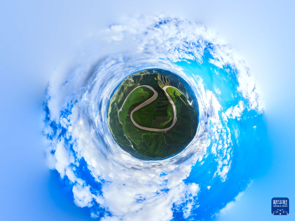 这是7月19日拍摄的黄河女儿湾一角(无人机全景照片)。新华社记者 张龙 摄
