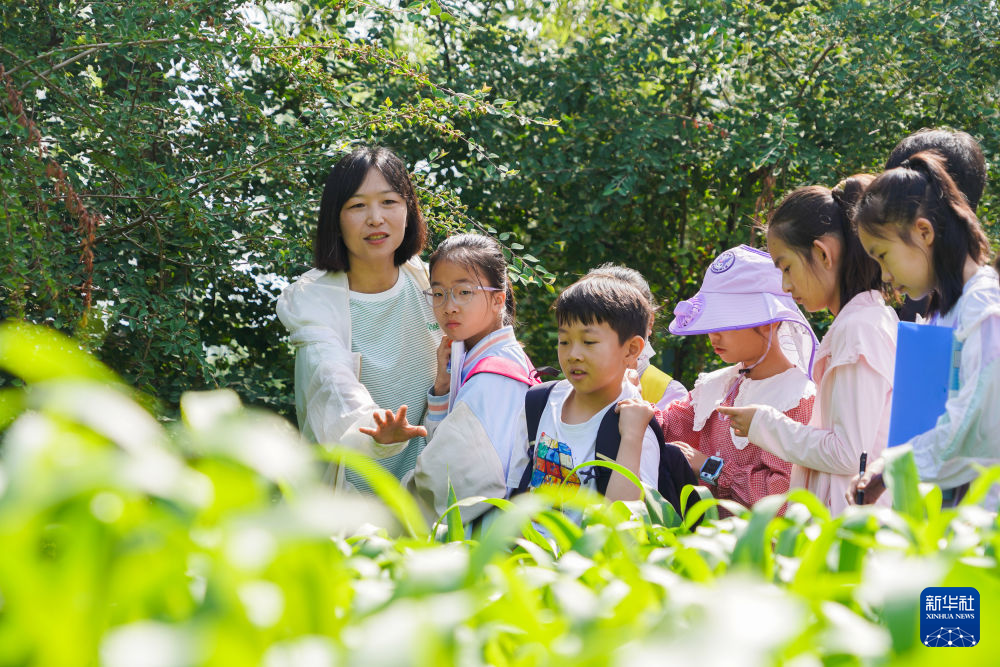 7月25日,在青海省西宁植物园举办的一场亲近自然的亲子活动上,工作人员给小朋友讲解植物的相关知识。新华社记者 耿辉凰 摄