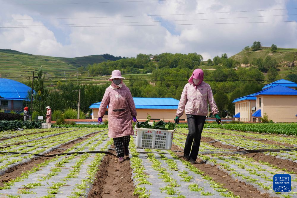 8月15日,青海省海东市互助土族自治县台子乡塘巴村村民在“供港澳蔬菜生产基地”搬运蔬菜。新华社记者 王艳 摄
