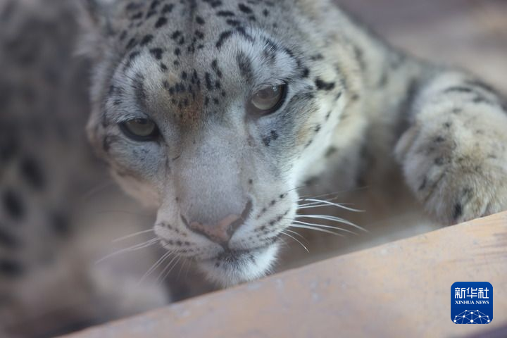 2023年3月3日,在青海省西宁市西宁野生动物园,一只雪豹伸出爪子和游客互动。新华社记者 李宁 摄