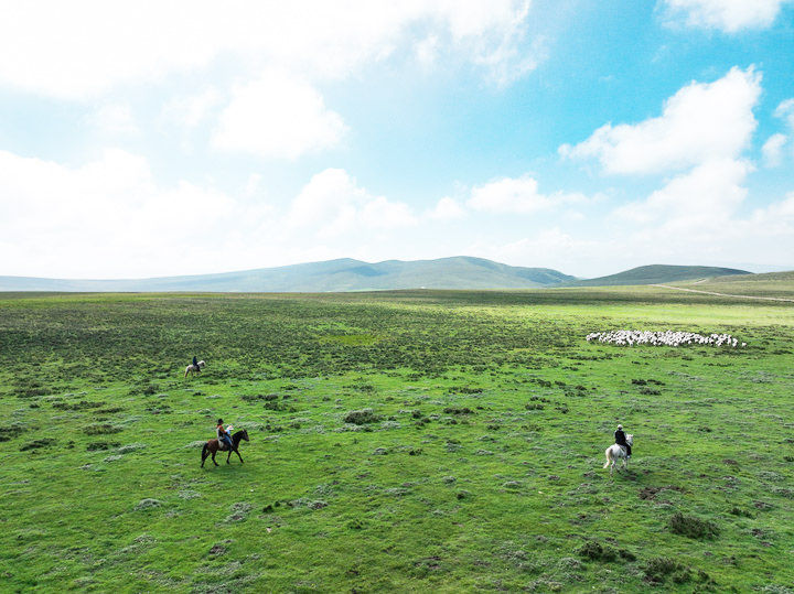 牧民在青海省金银滩草原放牧(2022年8月17日摄)。新华社记者 张龙 摄