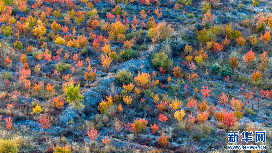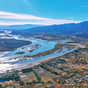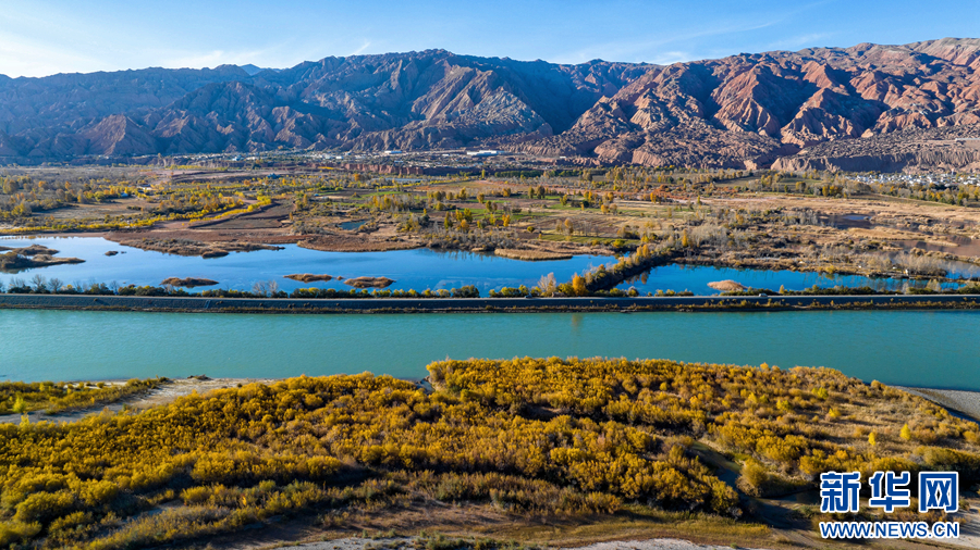 深秋时节,青海省海南藏族自治州贵德县渐渐染上了金黄、橙红的色彩,景观层次丰富,特色鲜明。远处苍凉壮阔的山脉与眼前的丹山碧水相映成画,让这里成为人们观赏和拍摄美景的好去处。