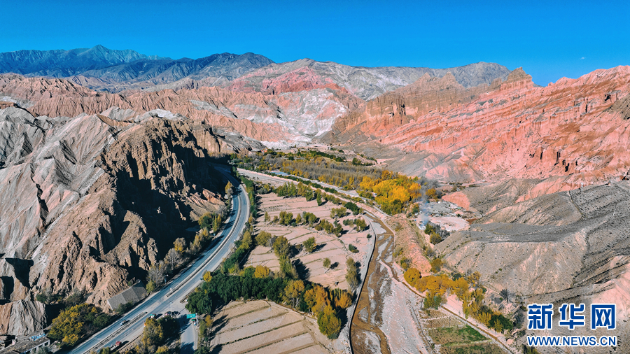 航拍青海省海南藏族自治州贵德县秋景。新华网发(宋忠勇 摄)