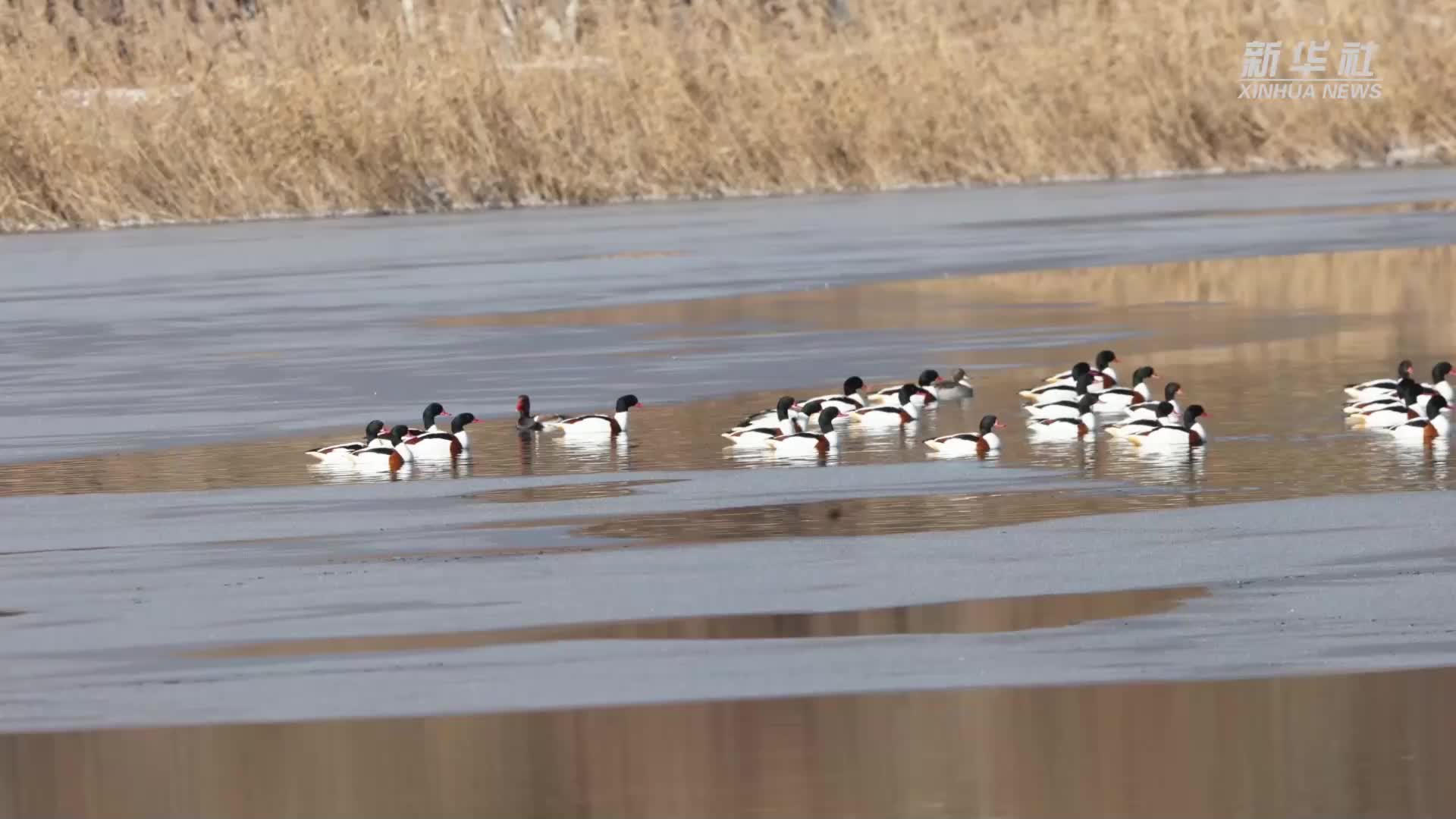 近日,生态环保志愿者才项南加在青海省西宁市宁湖湿地公园拍摄到成群翘鼻麻鸭的活动画面。此前,青海省虽有翘鼻麻鸭的观测记录,但多为少数几只。近年来,当地不断加大生态保护力度,湿地生态环境得到有效改善,越来越多的鸟类在此栖息繁衍,生态持续向好。