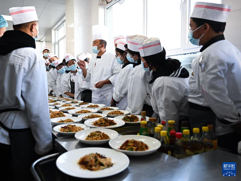 12月17日,青海省海南藏族自治州职业技术学校烹饪专业教师(中)在指导学生实训。新华社记者 央秀达珍 摄