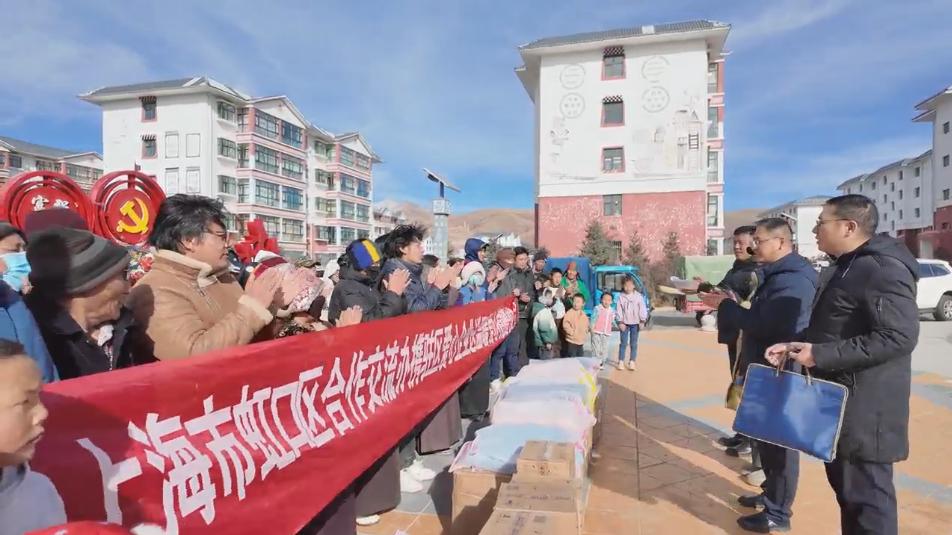 本网综合消息:新年伊始,春节临近之际,玛沁县委宣传部受上海市虹口区合作交流办及驻区爱心企业的委托,联合在久美家园开展“走进千家万户 温暖万家灯火”送温暖献爱心捐赠活动,为优云乡移民搬迁群众送上关怀关爱和冬日里的温暖。