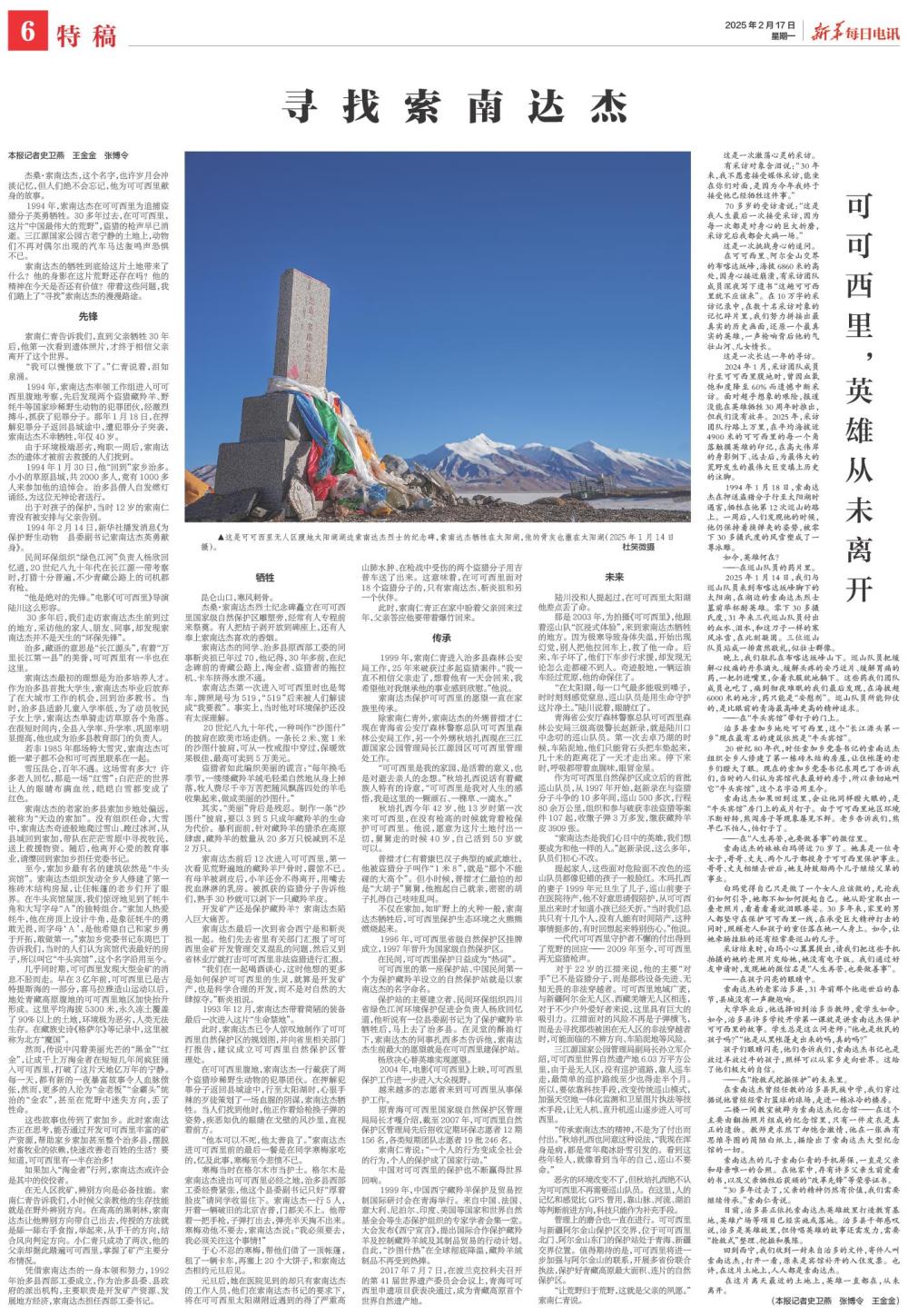 2024年1月,采访团队成员行至可可西里腹地时,曾因血氧饱和度降至60%而遗憾中断采访。面对超乎想象的艰险,报道没能在英雄牺牲30周年时推出,但我们没有放弃。2025年,采访团队行路上万里,在平均海拔近4900米的可可西里的每一个角落触摸英雄的印记,在高大伟岸的身影倒下、远去后,为最伟大的荒野发生的最伟大巨变填上历史的注脚。