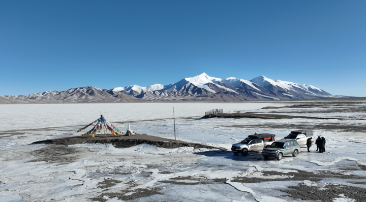 巡山队员在可可西里无人区腹地的太阳湖索南达杰纪念碑附近巡护。(摄于2025年1月14日)组图片均由杜笑微 摄