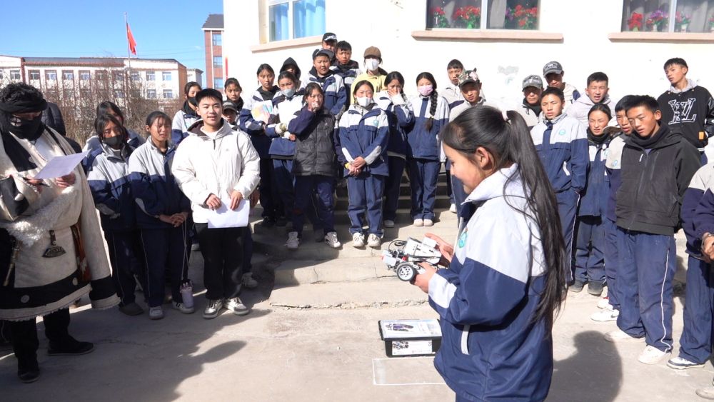 于是,三人用企业捐赠的机器人组建了曲麻莱县民族中学第一届机器人社团。他们自己设计课程,把机械结构、传感器这些知识,变成机器人拼装、编程游戏,让孩子们在玩耍中学习。