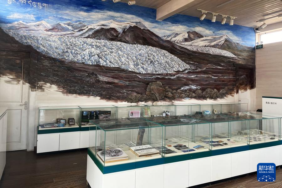 长江1号邮局是区域内的快递枢纽,也是为游客提供临时休息、充电等服务的驿站。走进邮局,休息区、咖啡角和纪念品展区依次排布,墙上的一幅雪山壁画在灯光下熠熠生辉。来自河北的志愿者王大河介绍,这幅壁画由废旧报纸和塑料瓶制作而成,描绘的是长江源各拉丹冬雪山。