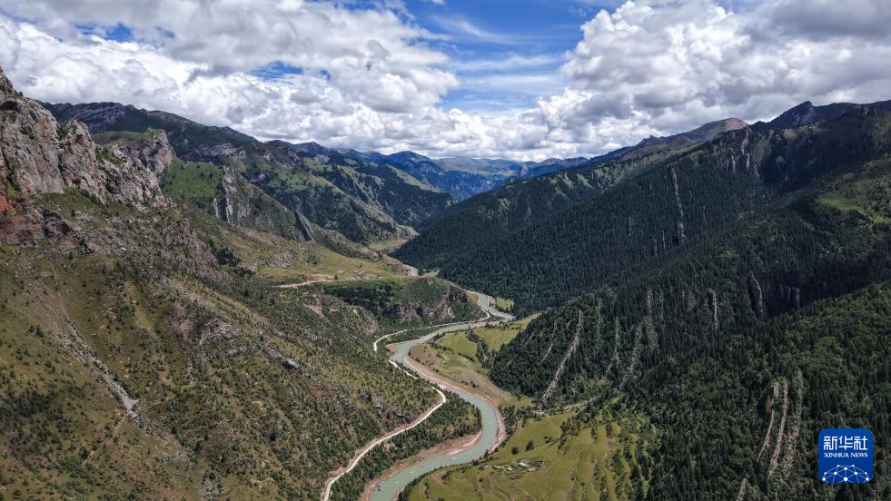 这是8月21日在青海省玉树藏族自治州囊谦县拍摄的江西林场(无人机照片)。