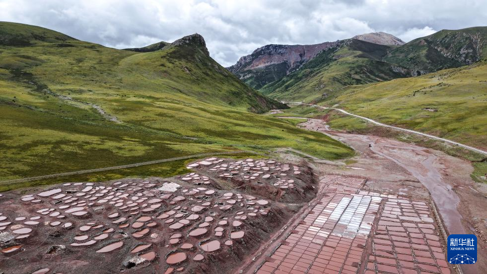 这是8月22日在青海省玉树藏族自治州囊谦县白扎乡拍摄的白扎盐场(无人机照片)。该盐场已有数百年历史,至今仍采用古老的晒盐、制盐工艺。新华社记者 齐芷玥 摄