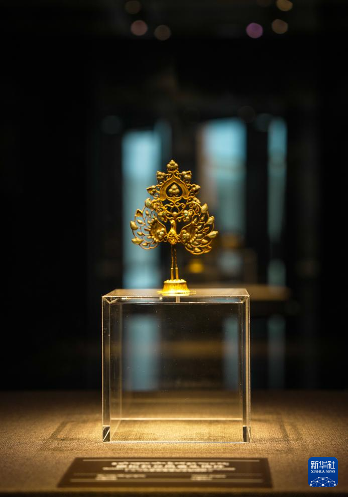 走进丝绸之路与青藏高原文明展厅,一件嵌松石立凤金头饰静静陈列在展柜中,金片捶揲而成的凤凰羽翼丰满,凤凰展翅昂立的姿态吸引着游客纷纷驻足拍照。这件来自吐蕃时期的珍贵文物,以精湛的工艺成为博物馆最受欢迎的展品之一。正是这件精美头饰,去年作为“文化使者”远赴法国,在唐代主题文物展中向欧洲观众展示了青藏高原的璀璨文明。
