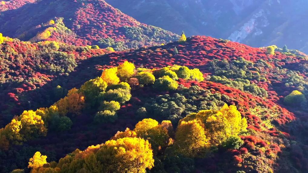 金秋十月,位于青海省西宁市湟中区的群加国家森林公园,远远望去,金黄、橙红、翠绿交织,宛若“仙境”。