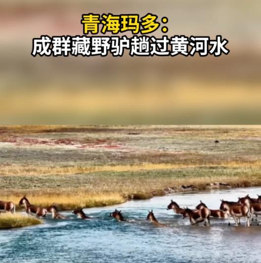 青海玛多:成群藏野驴趟过黄河水-新华网