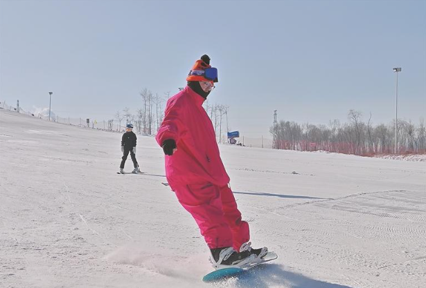 市民感受单板滑雪乐趣。记者 钟自珍 摄